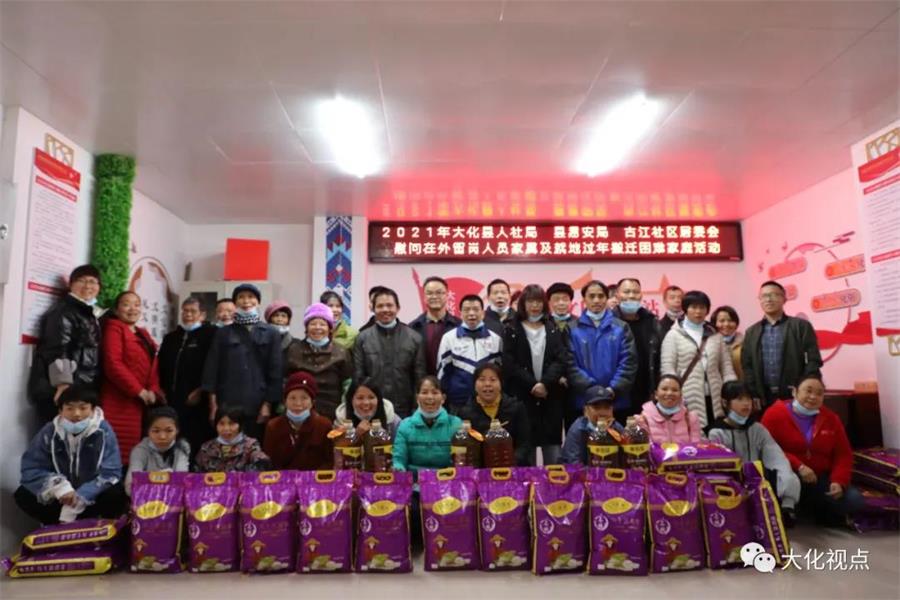 | 2月9日上午,大化瑶族自治县人社局联合县易安局、古江社区居委会开展慰问活动,慰问春节期间在外留岗人员家属及就地过年搬迁困难家庭。 此次慰问活动的对象,主要是古江社区春节期间在外留岗人员家属及就地过年搬迁困难家庭,共40户。慰问活动中,慰问组组织召开座谈会,和慰问对象交流谈心,祝愿大家过一个喜庆祥和的春节,并给大家送上食用油、大米等慰问品。 随后,慰问组来到困难家庭苏美学家中,给苏美学送去食用油、大米以及慰问金,并与她进行交谈,了解其家庭生活状况和存在的具体困难,叮嘱她有什么困难和问题可随时向社区反映,坚强乐观地面对生活。苏美学说:“我家四口人,就只有我一个人健康而已,老公有慢性病,婆婆常年病躺在床上。我有两个儿子,大儿子2016年过世时才20岁,小儿子患有地中海贫血。我家是很困难,县人社局的领导来慰问我,送给我一袋米一桶油,真的很感谢党委政府给我送温暖,让我过好年。真的很感谢!” 通过此次走访慰问活动,使春节期间在外留岗人员家属及就地过年搬迁困难家庭感受到了来自党委政府的温暖与关爱,解决了春节期间在外留岗人员的后顾之忧,有力地促进了社区的和谐稳定。 |