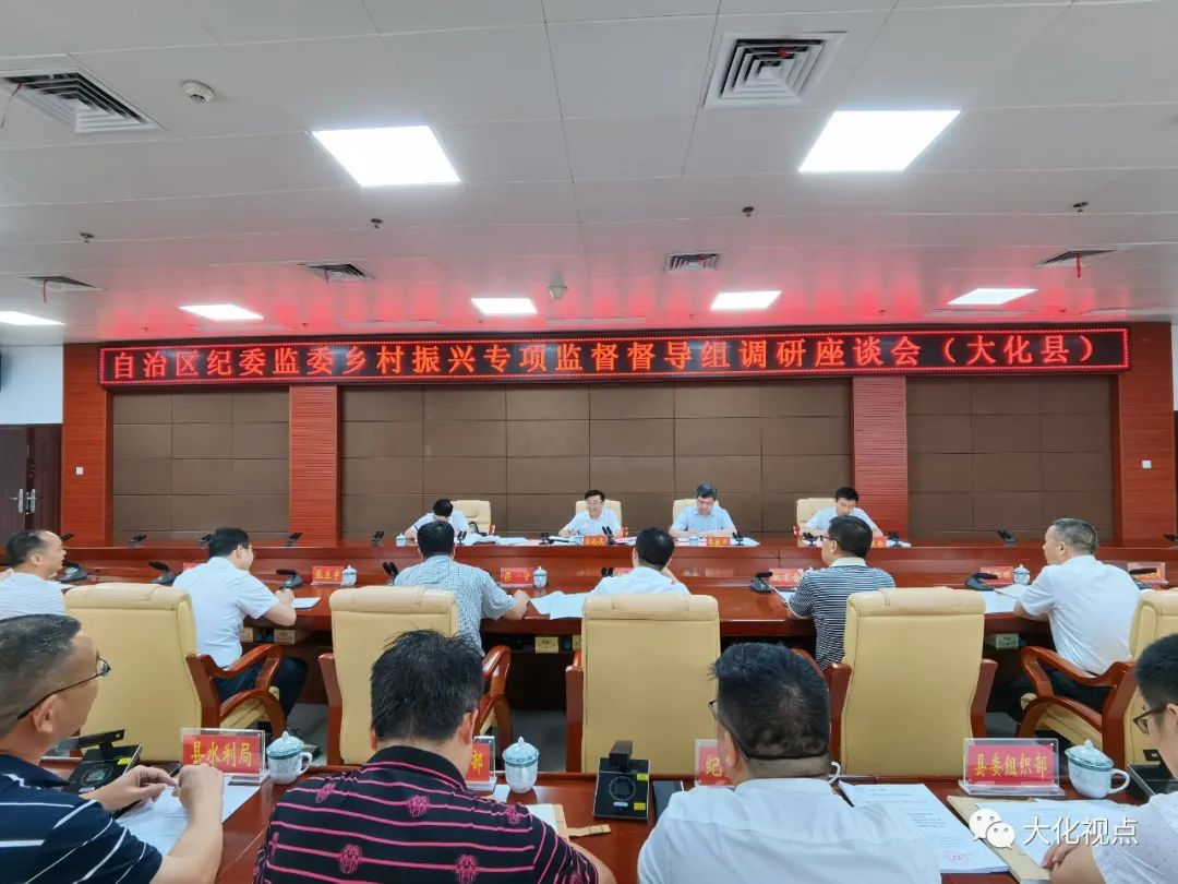 6月21日,自治区纪委副书记、监委副主任李伦兵率自治区纪委监委乡村振兴专项监督督导组到大化瑶族自治县召开调研座谈会,河池市纪委副书记、监委副主任陆俊百,自治县党委书记梁宁,自治县党委副书记姚万全,自治县党委常委、县纪委书记、县监委主任欧红明,自治县党委常委、县委办主任黄大友参加会议。 座谈会上,梁宁就大化巩固拓展脱贫攻坚成果同乡村振兴有效衔接问题整改工作情况进行汇报。欧红明就县纪委监委乡村振兴专项监督工作开展情况进行汇报。 督导组要求,要提高政治站位,高度重视问题整改工作,坚决克服松劲松懈思想,增强问题整改工作的危机感和紧迫感,凝心聚力,攻坚克难,全力抓好问题整改工作,坚决打赢巩固拓展脱贫攻坚成果同乡村振兴有效衔接“翻身仗”。要立足全局,长远谋划,列出内部问题清单,坚持问题导向,严格对照问题清单,逐一落实整改,确保发现问题真改实改。要加强产业发展,加大龙头企业培育引进,加快产业辐射带动和帮扶能力,为乡村振兴打下良好基础。要加强专项监督,抓紧抓实“八个聚焦、八项行动”,共同推动巩固拓展脱贫攻坚成果同乡村振兴有效衔接各项工作走深走实。要坚持稳字当头,守正创新,实事求是,真抓实干,加快推进“一卡通”工作、青年广西建设工作和力戒形式主义推动“三要”落实工作,全力营造好“三个环境”,以实际行动迎接党的二十大胜利召开。 梁宁表示,大化将以高度的政治站位,针对脱贫户收入、产业发展、“三保障”政策落实、易地搬迁安置、就业务工、医疗保障等方面存在的问题进行再分析、再研判,制定整改方案,形成问题清单,并逐一进行落实整改,全力推进巩固拓展脱贫攻坚成果同乡村振兴有效衔接。 (沈雁回) |