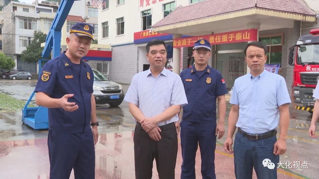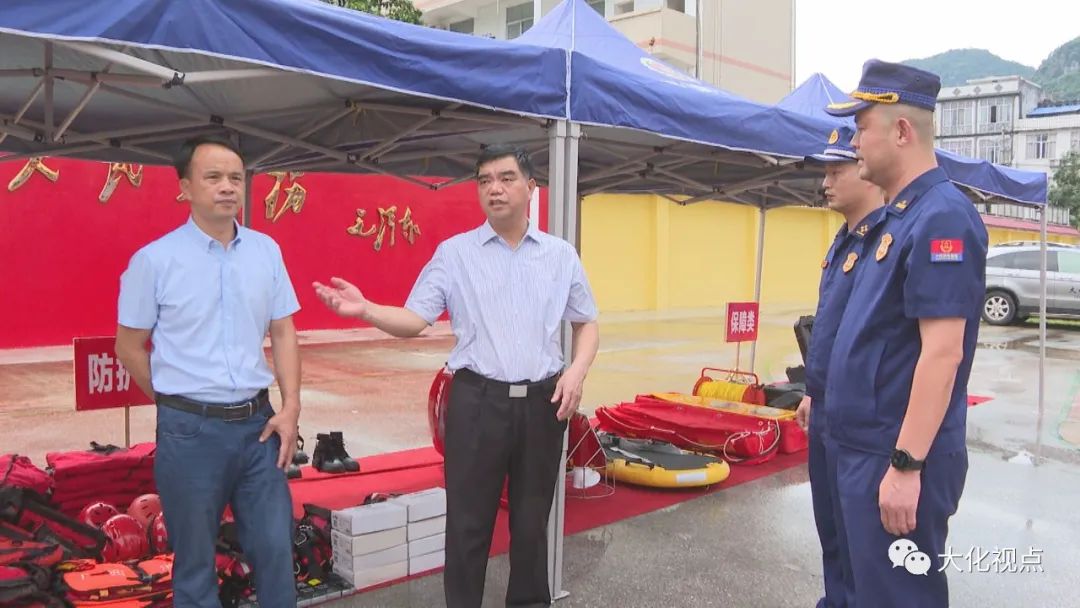 6月22日,大化瑶族自治县党委书记梁宁到大化消防救援大队、大化水力发电总厂督导调研防汛工作。 在大化消防救援大队,梁宁详细了解该大队防汛备汛工作开展、人员配备、水灾救援器材等物资储备情况,并亲切慰问消防救援人员。 梁宁指出,大化消防救援大队长期冲锋在抢险救援一线,在各项急难险重任务中勇挑重任,为群众生命财产安全保驾护航,在实现人民安居乐业和社会稳定发展方面做出了突出的贡献。希望消防救援队员持续发扬吃苦耐劳、艰苦奋斗的优良作风,牢记职责,不辱使命,持续提升应急救援能力,将消防救援队伍打造成攻坚克难的拳头队伍。 梁宁要求,各相关部门要积极支持全县消防综合救援能力建设,按照规范配备设施设备。要贯彻落实自治区防汛工作视频会议精神,树立“宁可备而无汛,不可汛而无备”意识,时刻做好抢险救灾的准备,确保汛期关键时刻能“召之即来、来之能战、战之必胜”。要深化实战训练,练就科学高效、专业精准的过硬本领,做到科学救援,保障救援过程中救援队员自身的安全,为大化经济发展、社会和谐稳定、百姓安居乐业再立新功、再创佳绩。 在大化电厂,梁宁详细了解该电厂大坝开闸泄洪、设备运行、人员值班值守等情况,详细了解电站防汛组织构架、防汛物资储备、汛情监测、防洪应急预案等工作落实情况。 梁宁要求,大化电厂要坚持以人民为中心,严格落实防汛责任制,制定完善防汛应急预案,加强隐患排查治理,加强监测预报预警,加强应急实战演练,做到防患于未然。要加强与上下游其他电站、地方党委政府、水文、气象、应急等职能部门沟通协调对接,密切关注汛期水位变化,做好泄洪预警工作,全力维护人民群众生命财产安全。 (韦荣名) |