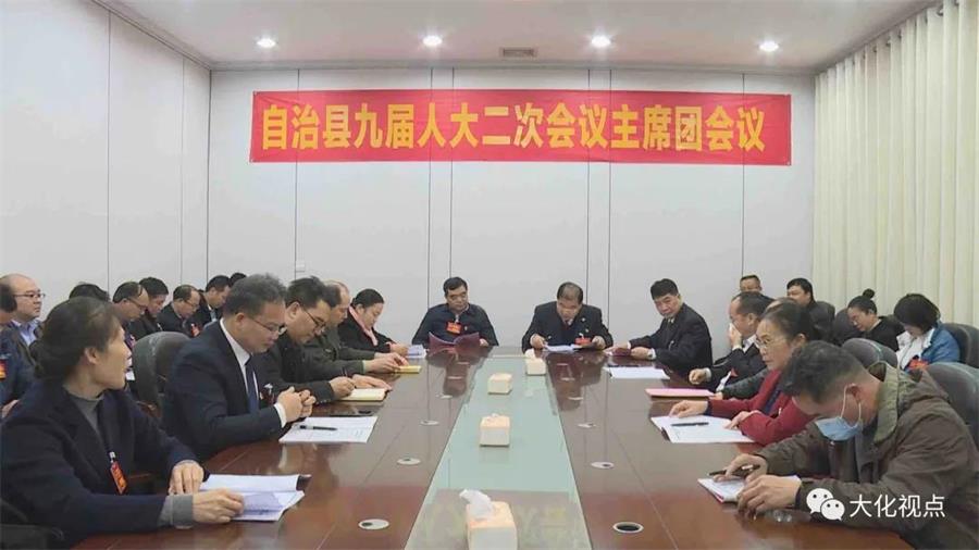 1月22日,大化瑶族自治县第九届人民代表大会第二次会议召开主席团第一次会议。 县委书记梁宁出席会议,县人大常委会主任韦佳勇主持会议。 会议推选大会主席团常务主席;表决通过大会日程(草案);表决决定大会副秘书长人选;表决通过大会表决议案办法(草案)表决通过代表提出议案截止时间的决定(草案);表决将《大化瑶族自治县七百弄鸡产业保护条例(草案)》交代表团审议。 王丹华、潘毓川、张容胜、张飞、莫利细、韦幼梅、韦江金、韦锦岳等领导出席会议。