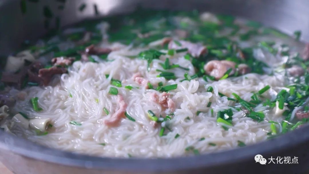韦家权是大化“贡川榨粉”店的老板,每天凌晨5点,他就得早早起来做榨粉。榨粉的程序就是泡生米,然后发酵,发酵3天左右,有点酸的那一股味道那就可以了。 米浆是生的,用特制的工具进行压榨,下锅煮一分多钟即可。火大了,煮久了,粉会断;火候不到位,煮不熟,粉也断,所以这个度要拿捏得恰到好处。 经过3天的发酵,榨粉里面含有丰富的乳酸菌,爽口消食,对身体有益。 早上6点半,店里迎来了第一批老顾客,他们吃完后评价:“酸度适中,好香,好爽,可口!” 韦家权是大化贡川乡人,2008年来大化县城开的这个榨粉店,做了第一年没有什么客人爱吃,当时他想关店去广州打工,他老婆开导他:“你再出去两三年四五年,小孩在家不听爷爷奶奶的话,小孩变坏了,你出去打工赚再多的钱也没用。” 在老婆的劝导下,韦家权最终坚持下来了,逐步改良榨粉的口感,几年以后榨粉店的生意也好转起来,回头客多了。 回想起创业的经历,韦家权激动地说:“做榨粉很辛苦的,以前我两夫妻两点钟就挨起床了,到后来慢慢的顾客接受了这个粉口味,所有的心酸都是为了生活,虽然辛苦但是也快乐!” 榨粉,酸中带甜,柔中有韧,千丝万缕诠释百态人生! |